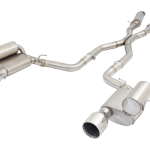 Our twin 3″ 304 stainless steel system consists of two resonators in the centre, X pipe and dual rear mufflers assisted by drone canisters with 4″ polished tips. We believe this to be the best combination to really wake up these awesome vehicles, while retaining great daily drivability.