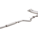 The strategically placed center resonator ensures a balanced tone while minimizing drone, delivering a smooth and refined exhaust note. The system features oval rear mufflers that not only improve airflow but also provide a sporty aesthetic.