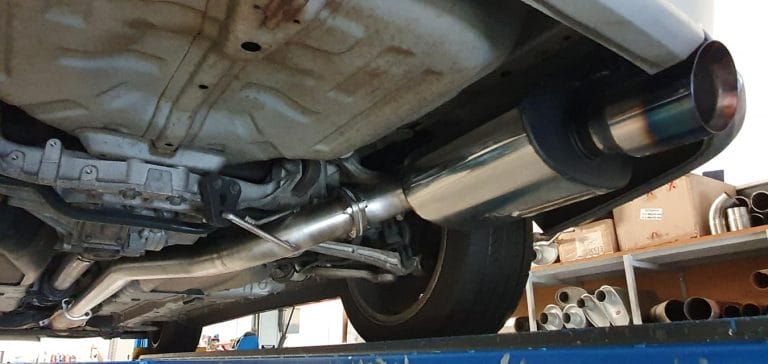 Custom built a Single 3″ stainless steel mandrel bend catback System with XFORCE muffler and 4.5″ burnt blue tip.
